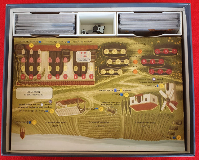 Comporta jogo base mais expansão Tuscany e mais expansão Visitantes do Vale do Reno e Viticulture: Visitantes do Charco